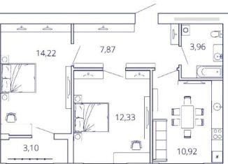 2-ком. квартира на продажу, 59.6 м2, Кальная улица, 77