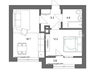 Общая площадь: 36 м2