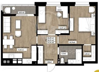 Общая площадь: 56.9 м2