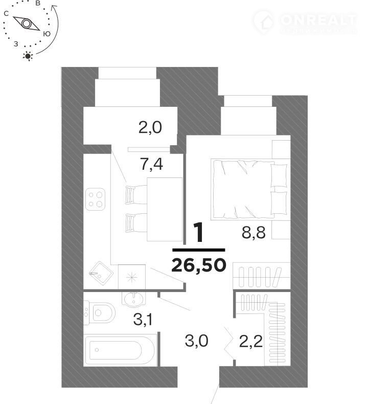 Общая площадь 26.5 м2