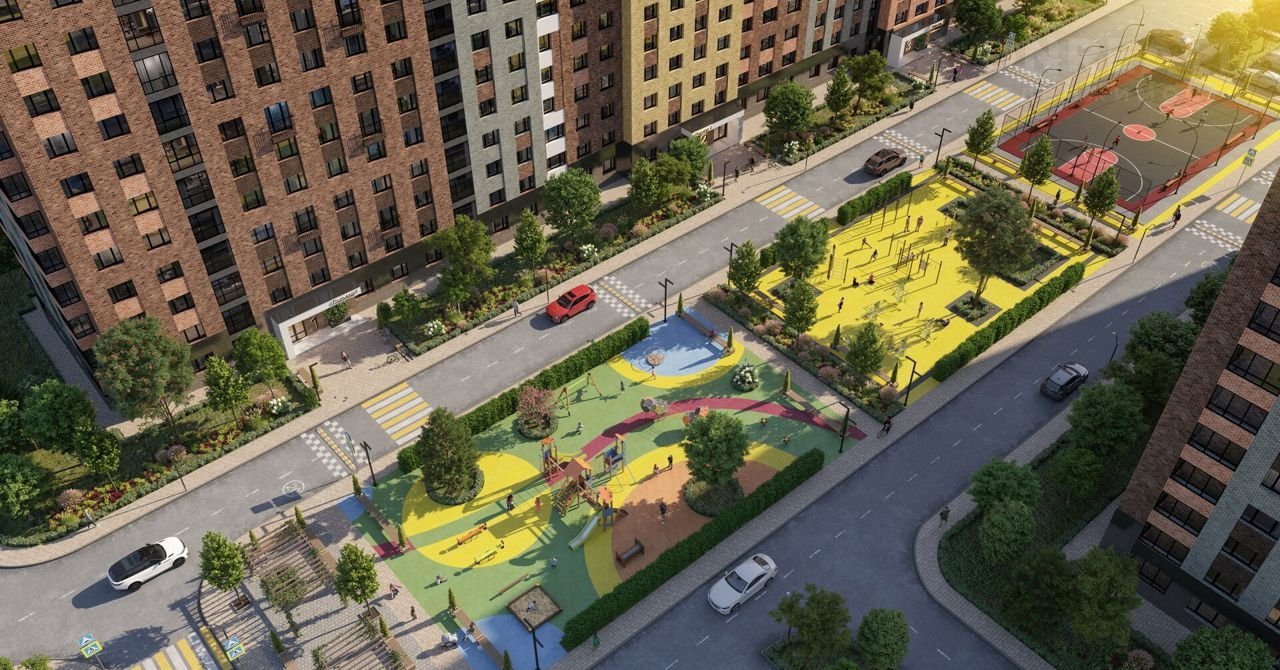 Bнутрeннеe пpоcтpанcтво комплeкca cтанeт наcтоящим цeнтpoм жизни. Mы предусмотрели создание детских и воркаут площадок.