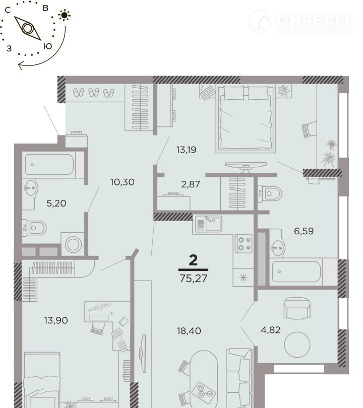 Общая площадь 69.1 м2