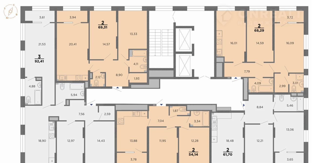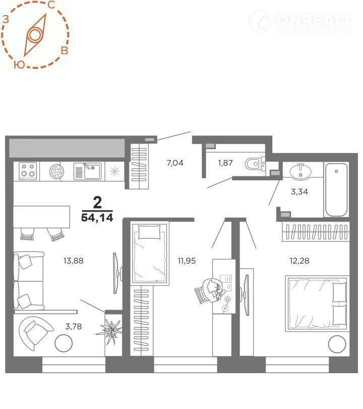 Общая площадь 54.1 м2