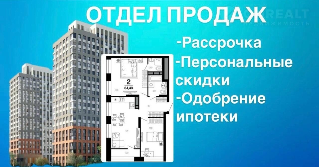 2-комнатная квартира, 64.4 м2, этаж 9 / 21, на продажу в Рязани