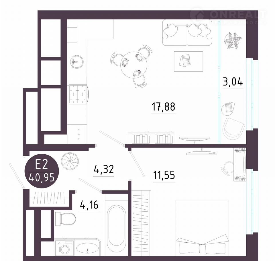 — Просторная кухня-гостиная (17,88 м²) – идеальное место для семейных вечеров и встреч с друзьями. Уютная комната (11,55 м²) – ваш личный уголок спокойствия.