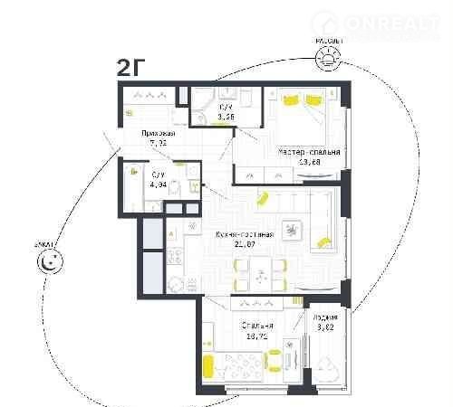 2-комнатная квартира, 59.2 м2, этаж 22 / 25, на продажу в Рязани, Шереметьевская улица, 12к4