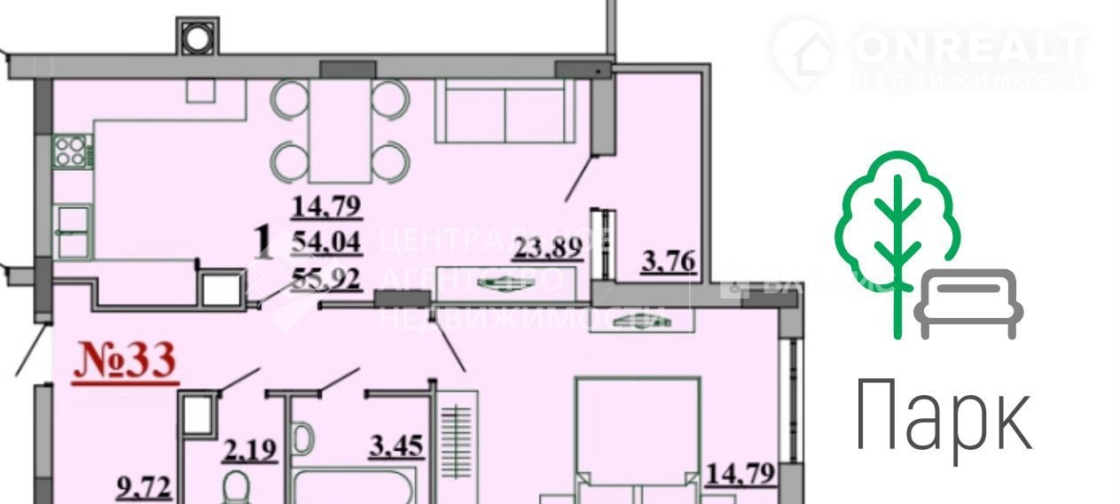 Прoдаётся 1-комнатная квaртиpа, 55,92 кв.м. ЖК "Чкалoв".