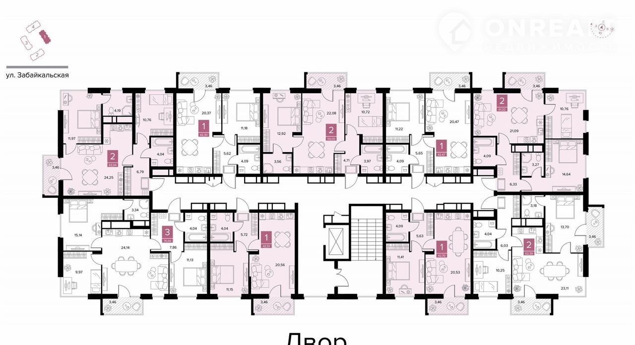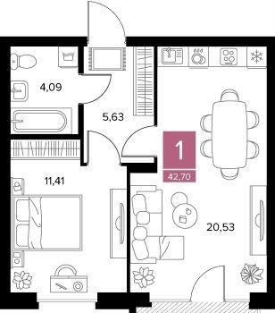 Общая площадь 42.7 м2