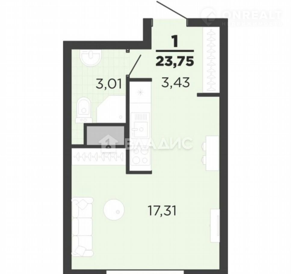 Жилая площадь 20.5 м2