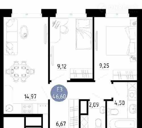 Общая площадь 46.6 м2