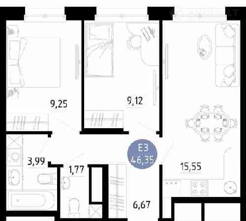 Общая площадь 46.4 м2