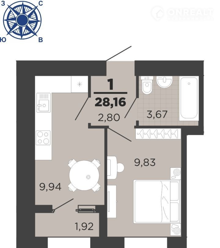 Общая площадь 28.2 м2