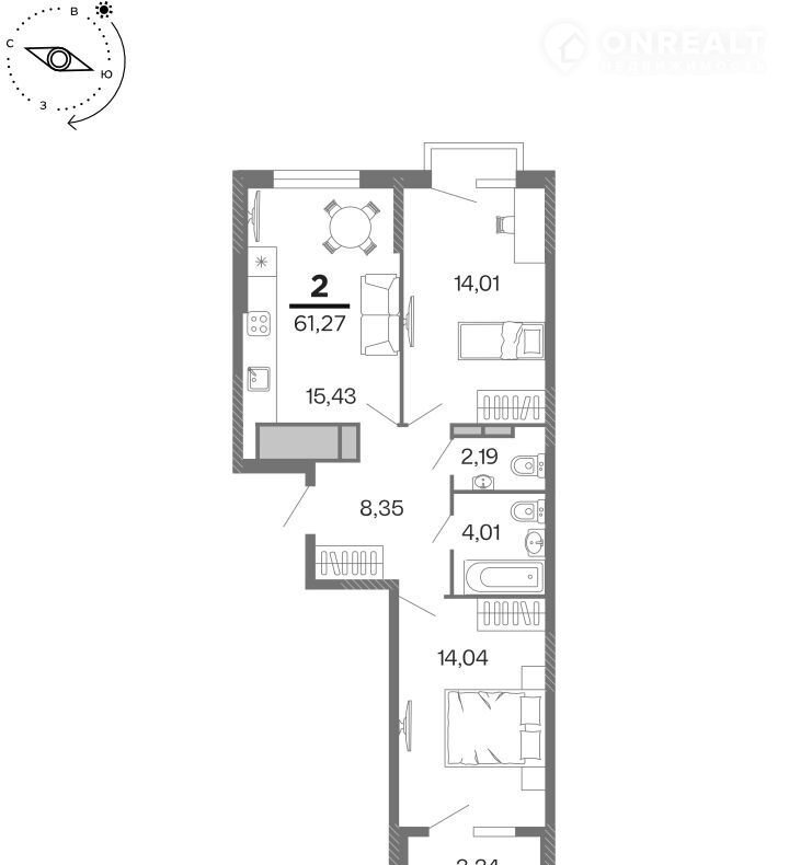 Общая площадь 61.3 м2