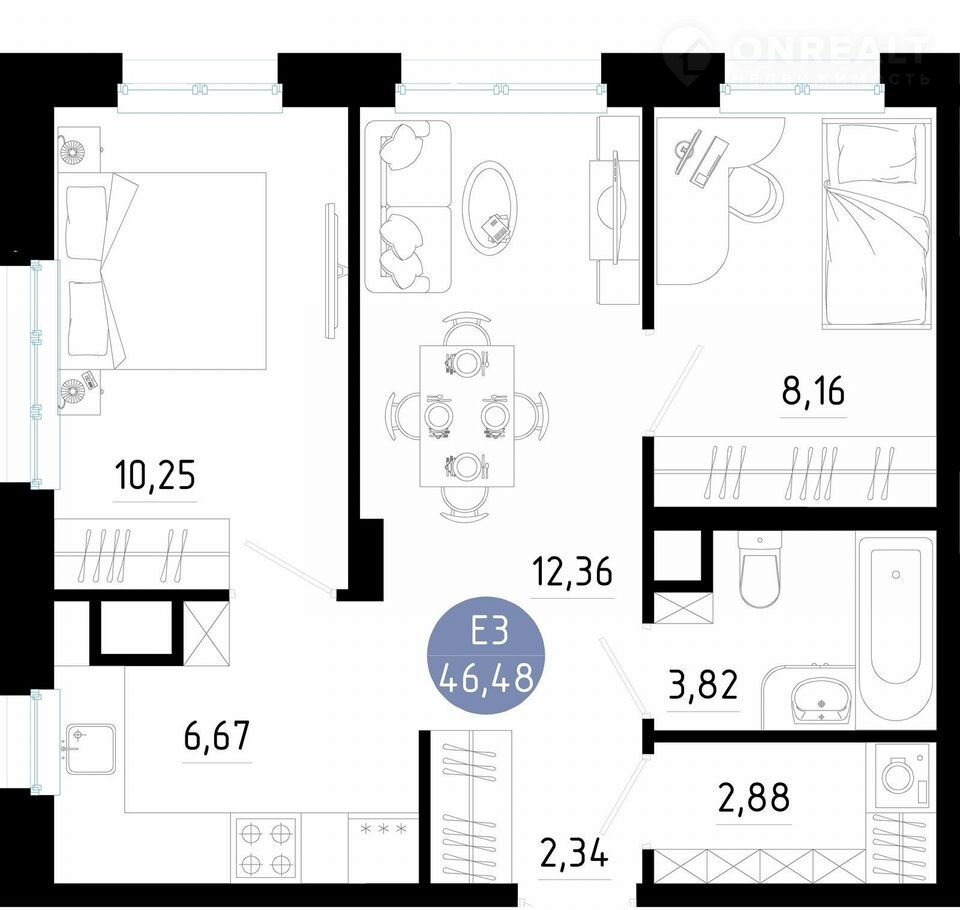 Общая площадь 46.5 м2