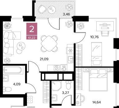 Общая площадь 61.2 м2