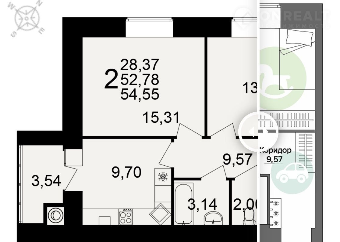 Общая площадь 54.6 м2