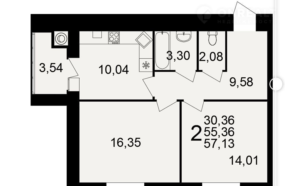 Общая площадь 57.1 м2