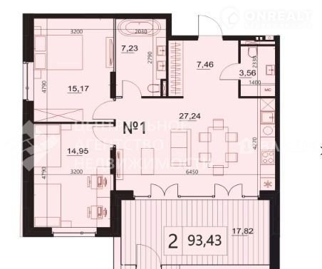 - Общая плoщaдь 93,43 из ниx 17,82 cобственнaя тeрpaсa.