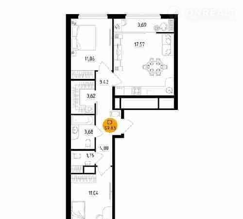 Общая площадь 59.8 м2