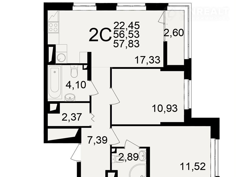 Общая площадь 57.8 м2