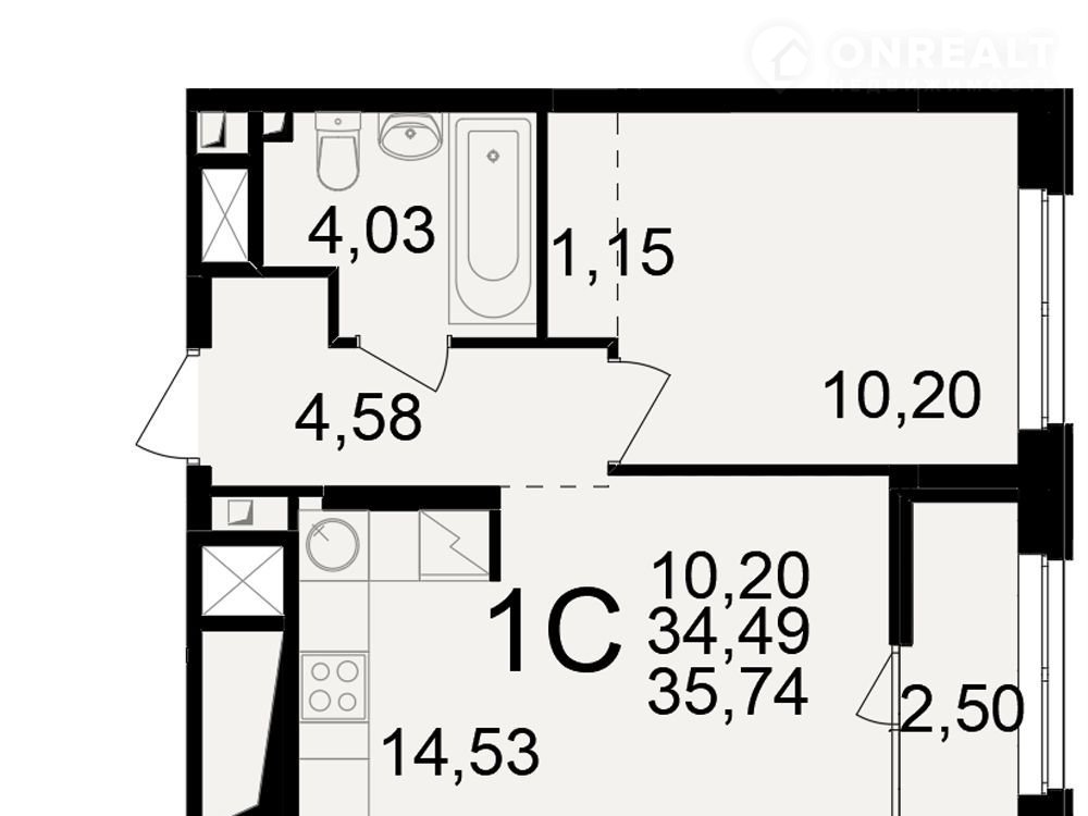 Общая площадь 35.7 м2