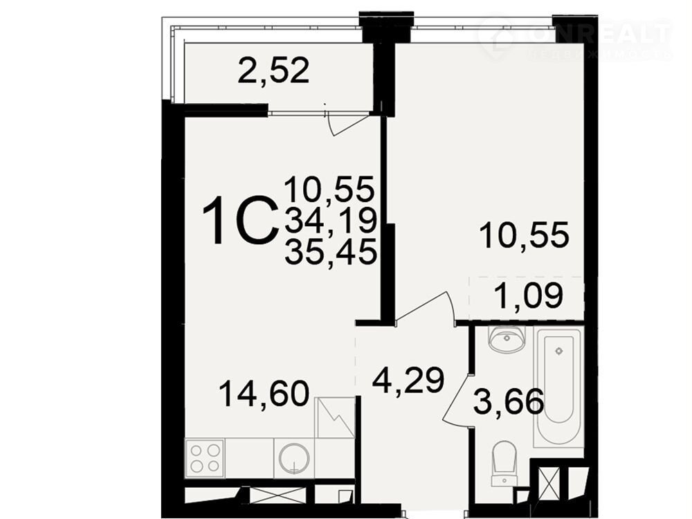 Общая площадь 35.5 м2