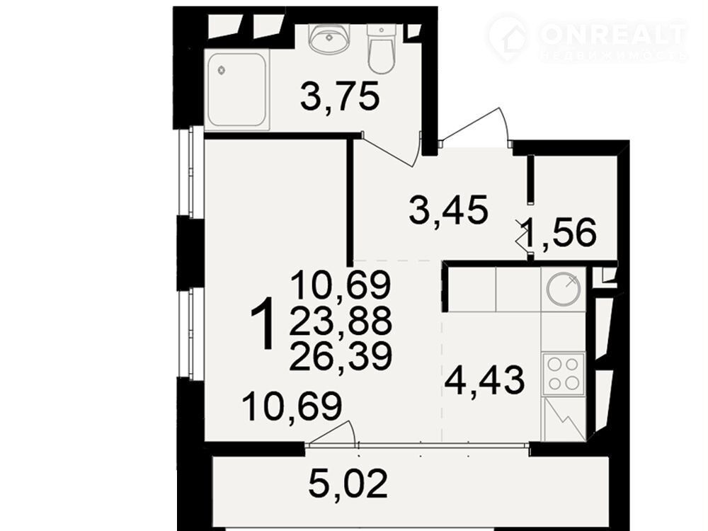Общая площадь 26.4 м2