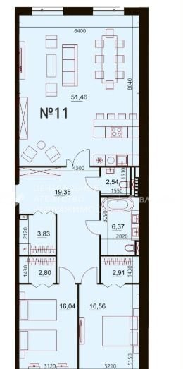 Площадь кухни 51.5 м2