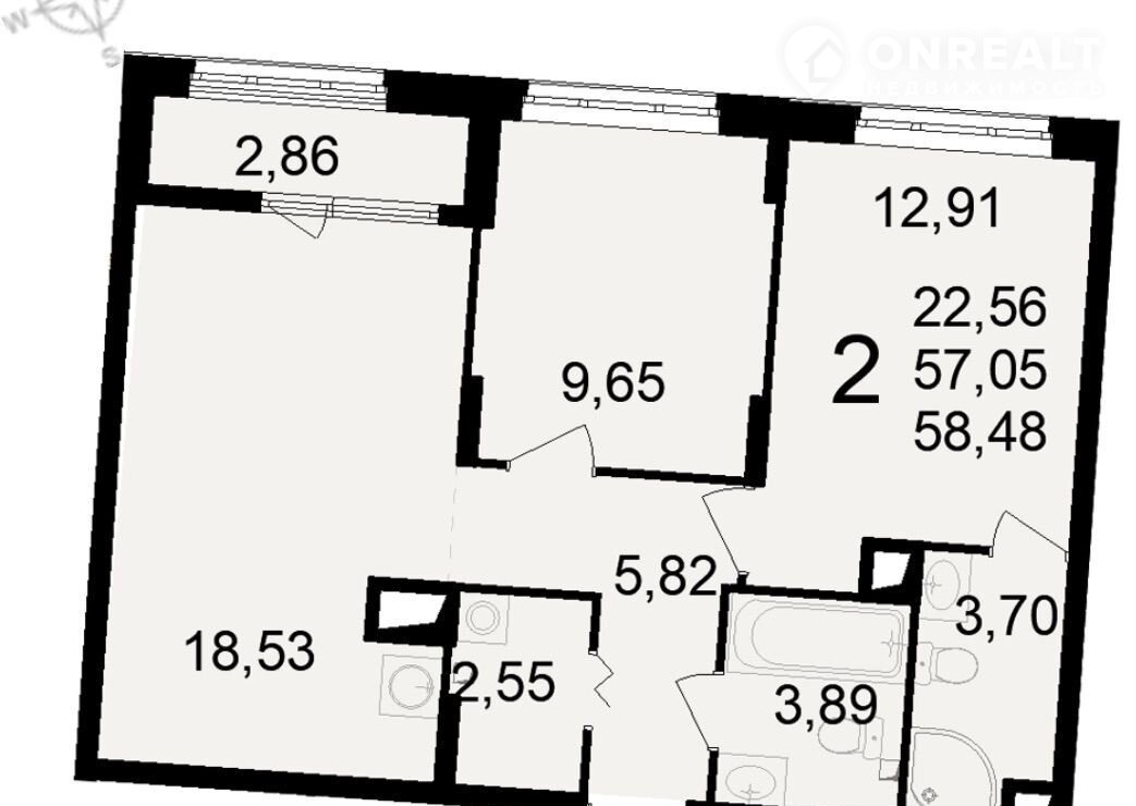 Общая площадь 58.5 м2