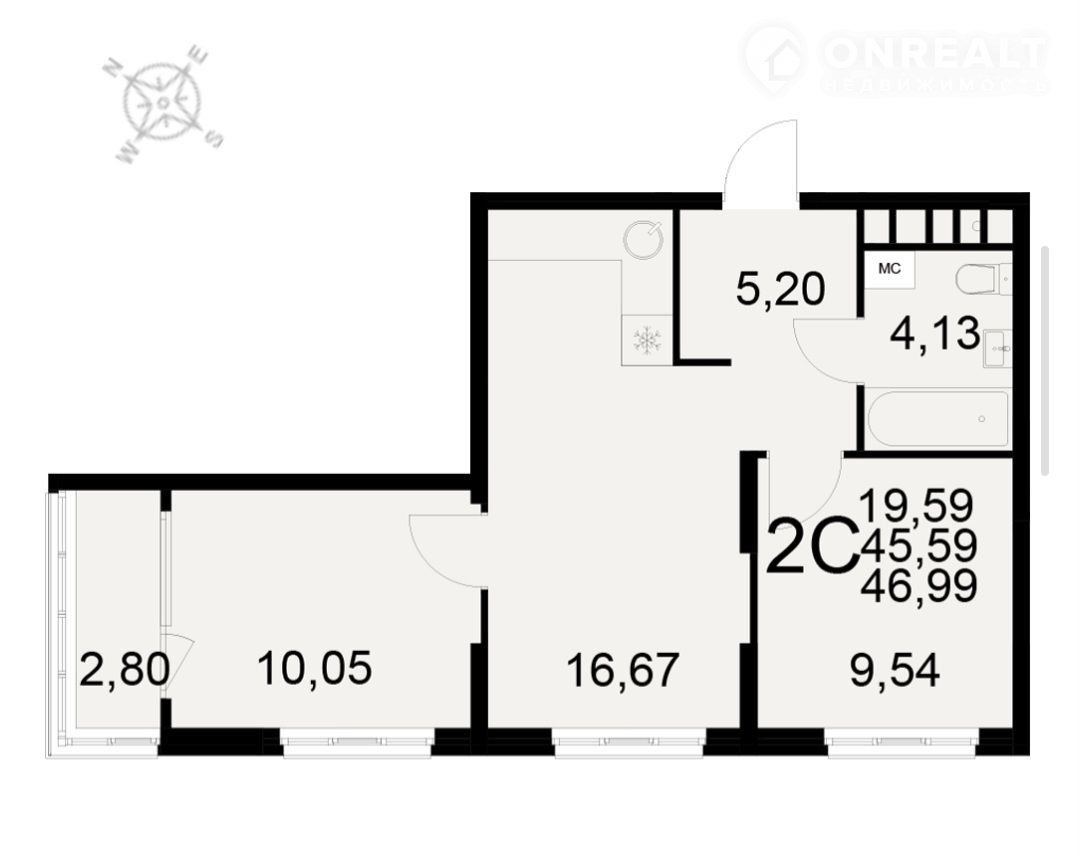 Общая площадь 47 м2