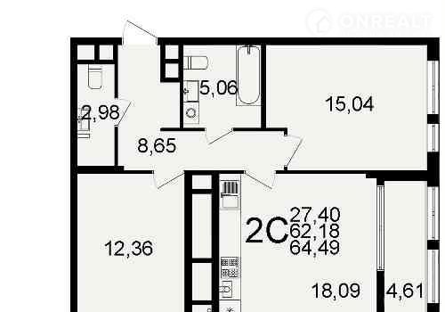 Общая площадь 64.5 м2