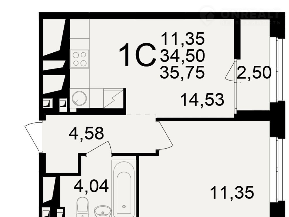 Общая площадь 35.8 м2