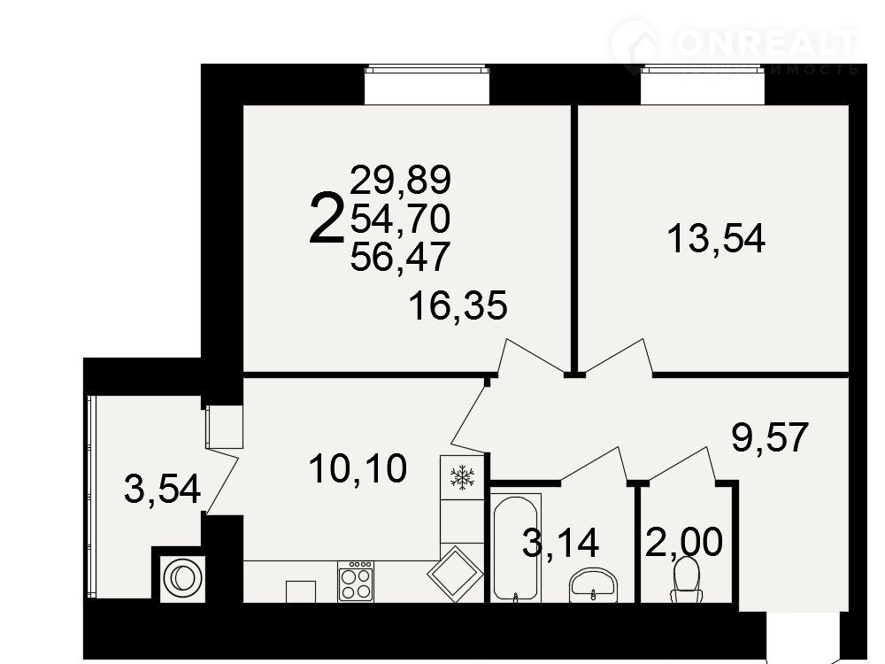 Общая площадь 56.5 м2