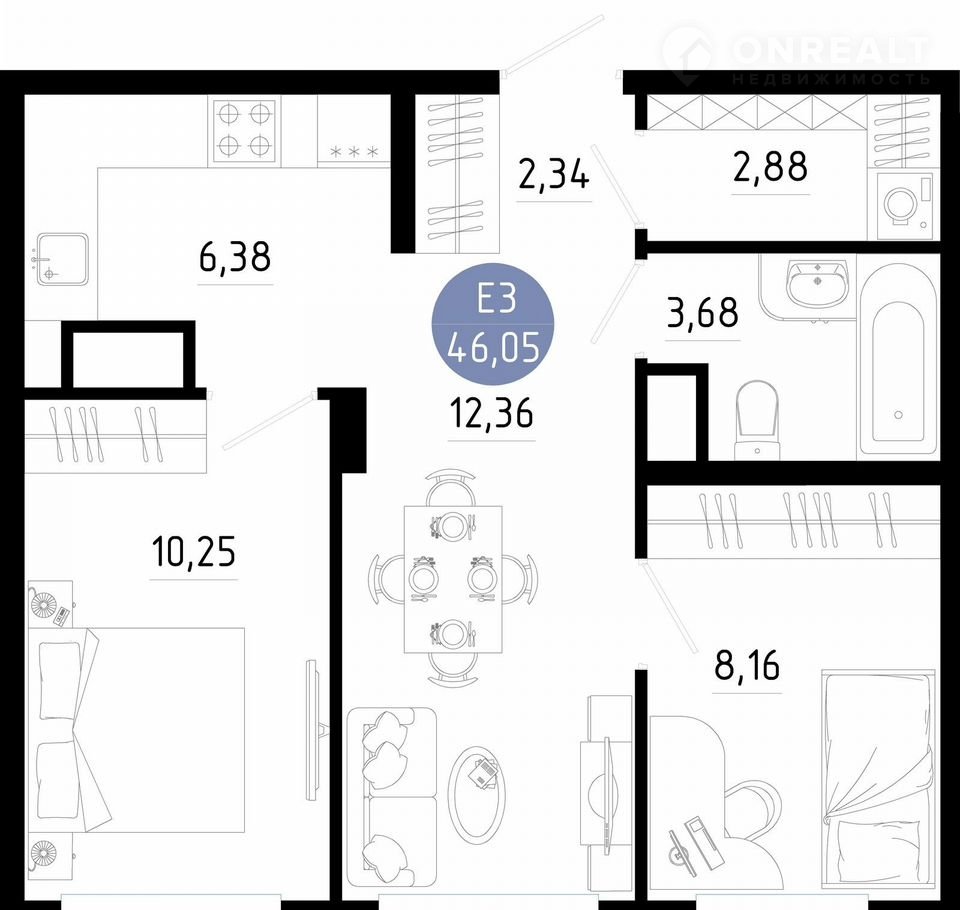 Общая площадь 46.1 м2