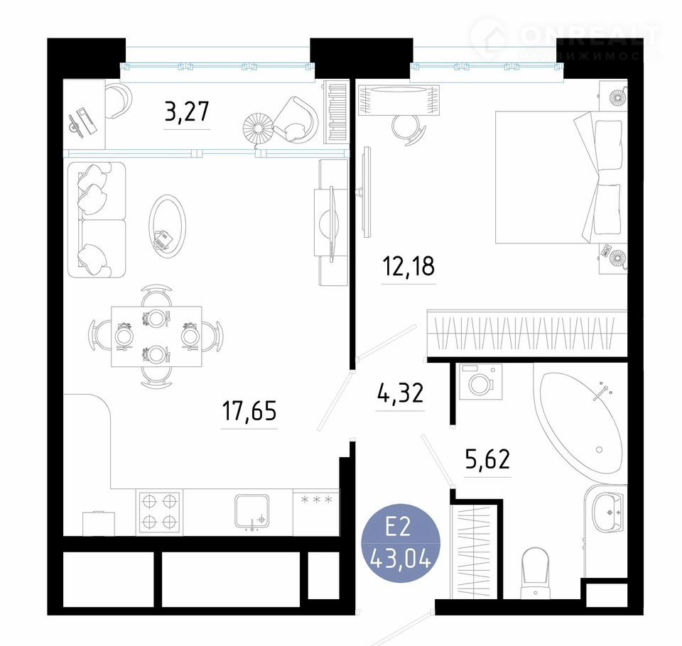 Общая площадь 43 м2