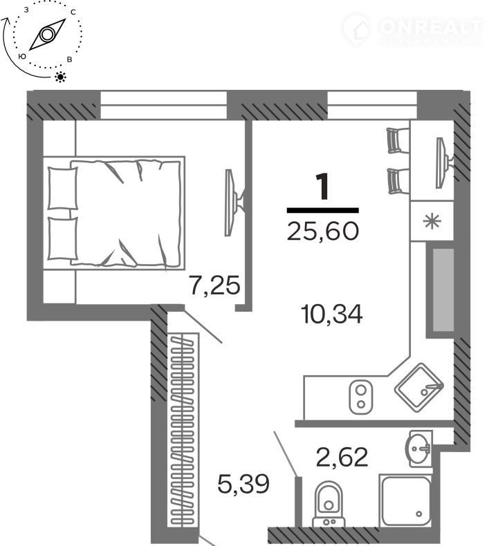 Общая площадь 25.6 м2