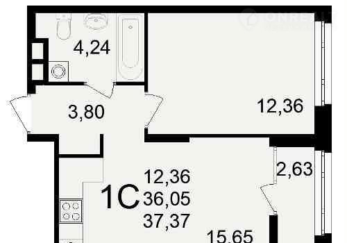 Общая площадь 37.4 м2