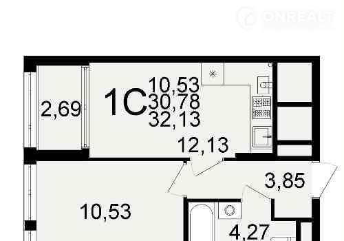 Общая площадь 32.1 м2