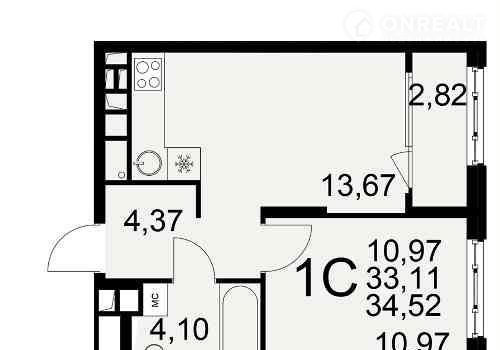 Общая площадь 34.5 м2