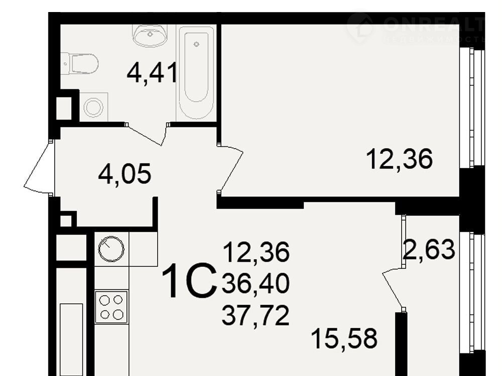 Общая площадь 37.7 м2
