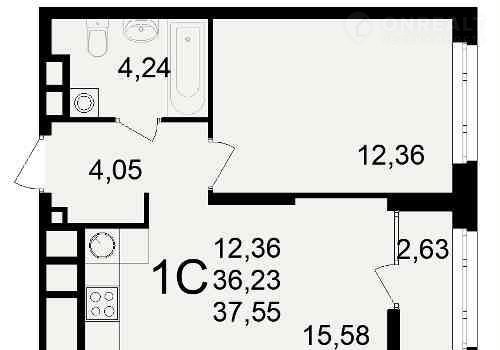 Общая площадь 37.6 м2