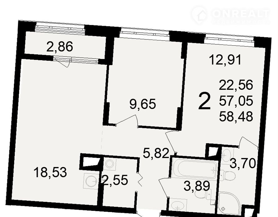 Общая площадь 58.5 м2