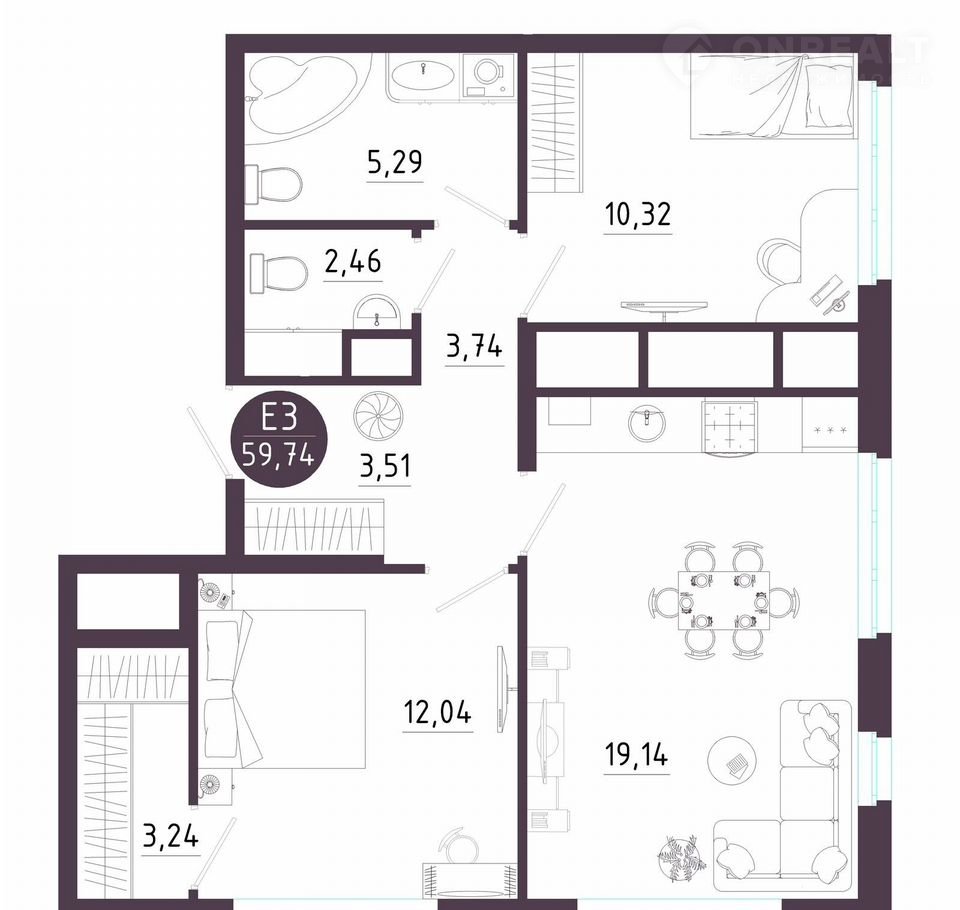 Общая площадь 59.7 м2