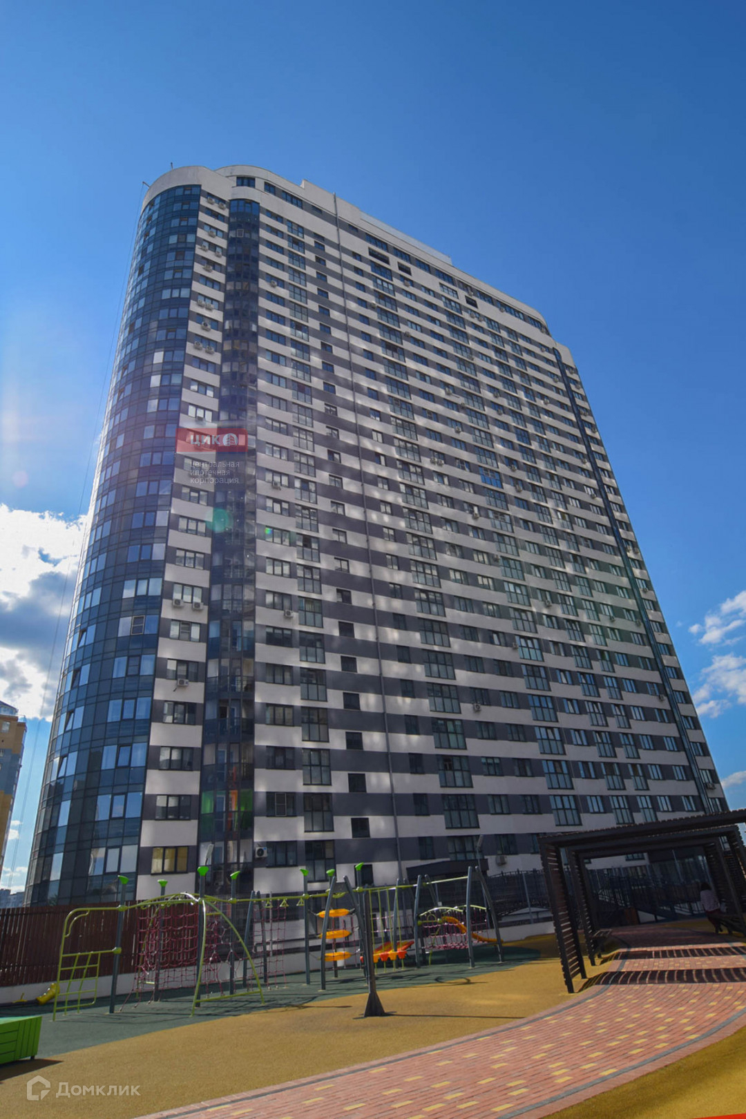 Закрытая территория с современными детскими и спортивными площадками, большая крытая наземная парковка, летний фонтан