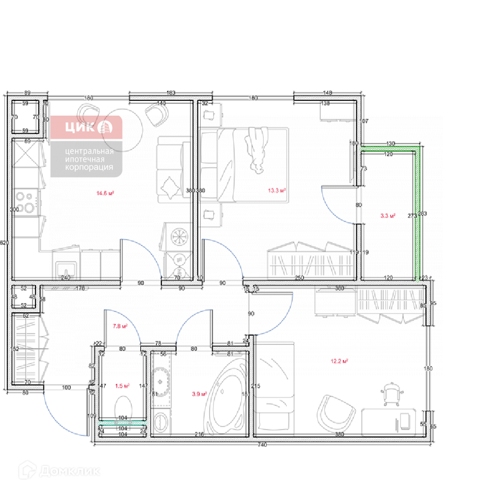 Все комнаты в квартире, правильной квадратной формы. Каждый квадратный метр, можно использовать с пользой.