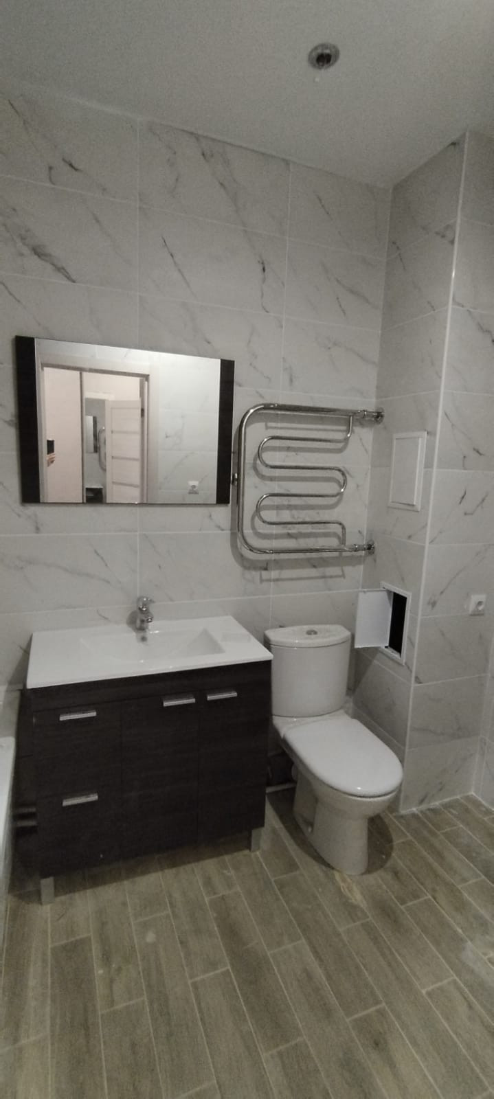 - Совместный санузел, отделан современной плиткой;