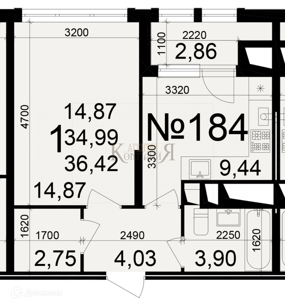 Общая площадь 36 м2