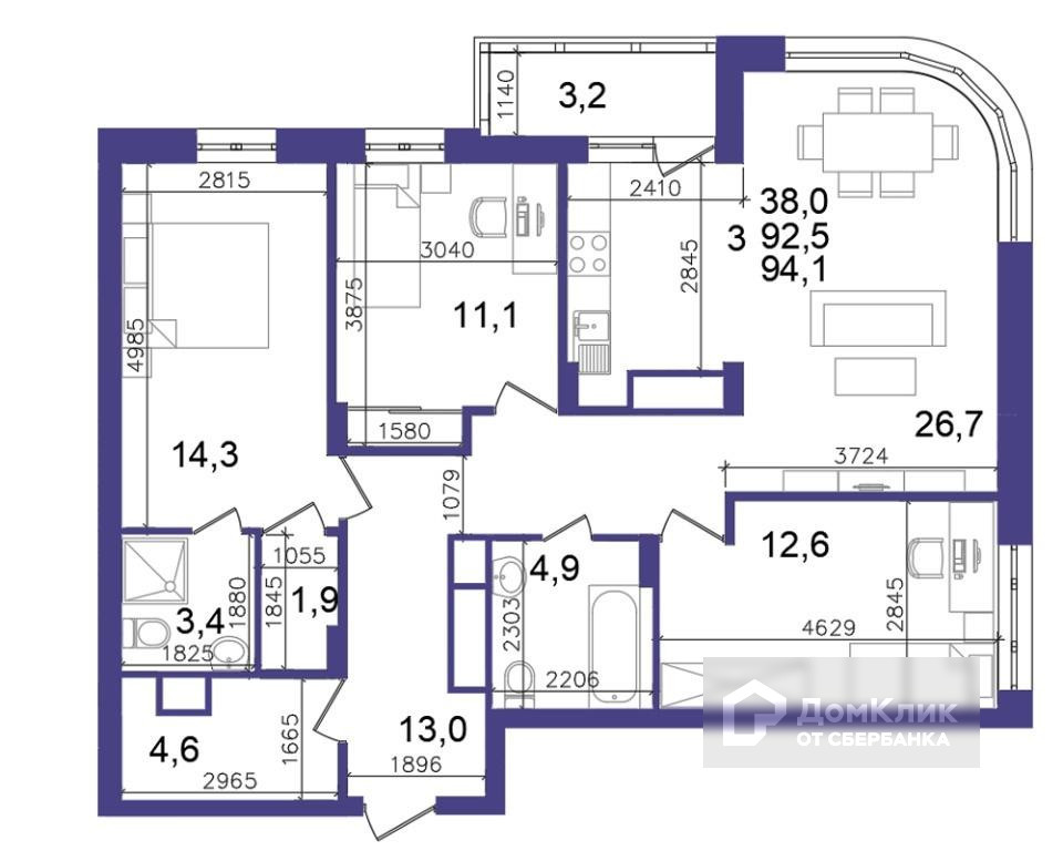 Общая площадь 94.15 м2