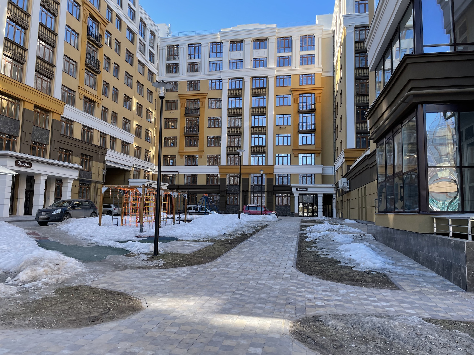 Трехкомнатная квартира в монолитно-кирпичном доме бизнес-класса в неоклассическом стиле с фасадным утеплением и декоративной отделкой камнем. (ЖК "МИЧУРИН", Рязань, Центр, ул. Введенская, 115; год постройки 2021, застройщик ГК "ЕДИНСТВО")  Панорамные окна выходят на площадь Мичурина. Подъезд 4. Состояние – от строителей: стены оштукатурены, стяжка пола не установлена, отопление автономное. Оконные блоки пластиковые. Лестничные площадки и марши облицованы плиткой. Лифты ELM. Ограничение доступа посторонних лиц на придомовую территорию (ограждение, видеонаблюдение). Двор-патио на эксплуатируемой кровле. Детские и спортивные плошадки. Подземный паркинг и подсобные помещения.  Развитая инфраструктура: в доме – магазин "ПЕРЕКРЕСТОК", рядом остановка общественного транспорта, поблизости – рынок, аптеки, школа, детский садик. Единственный собственник. Прямая продажа.