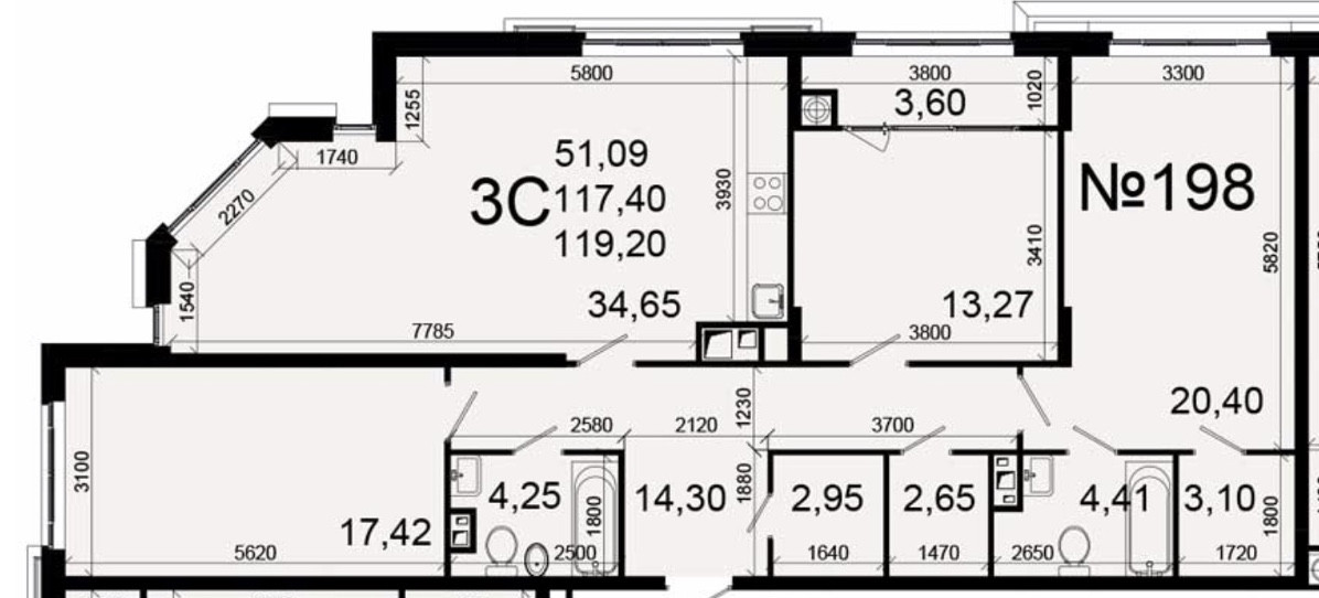Общая площадь 115.5 м2